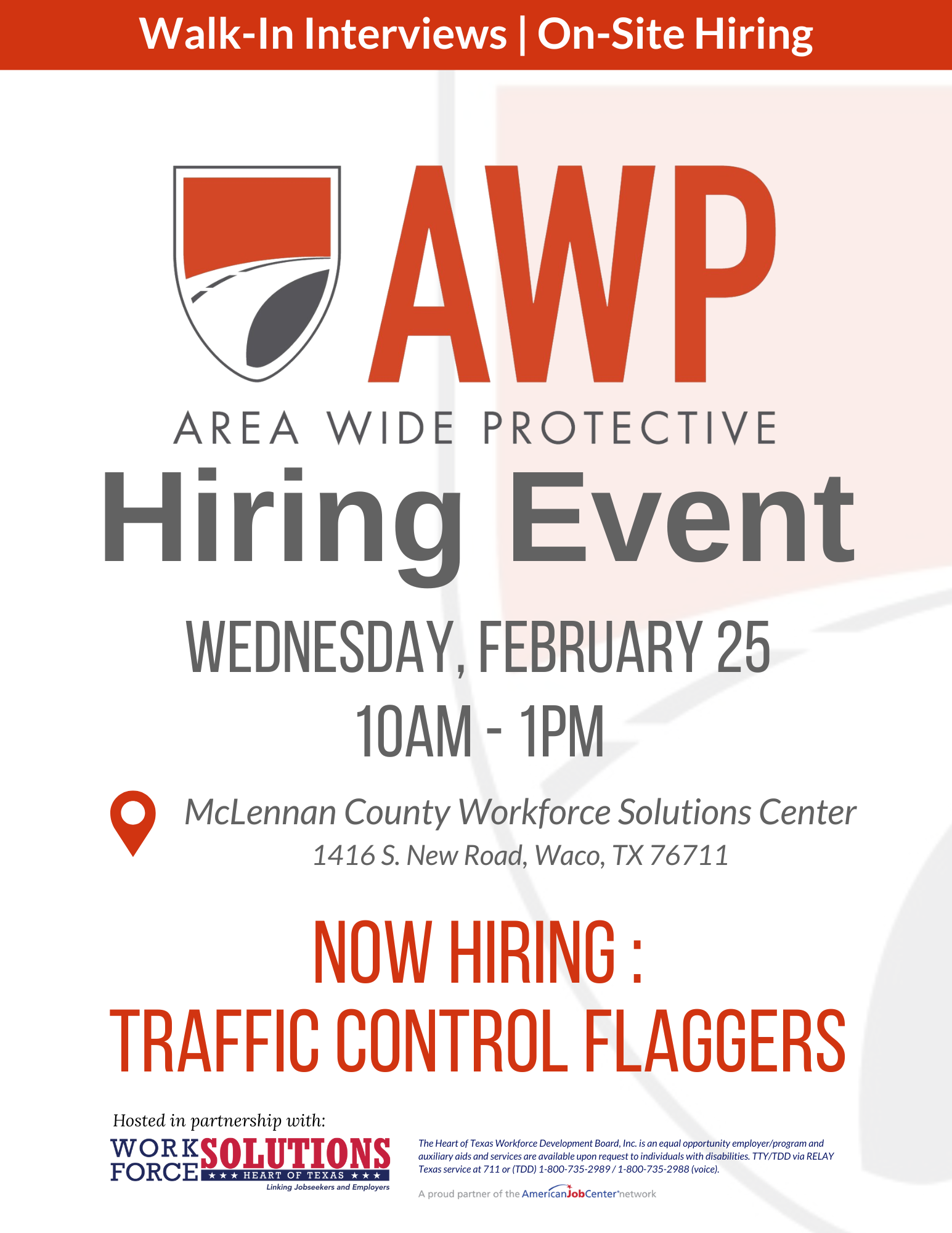 Looking to get hired? Meet representatives from Area Wide Protective (AWP) at their upcoming Hiring Event on Wednesday, February 25 at our McLennan County Workforce Solutions Center!